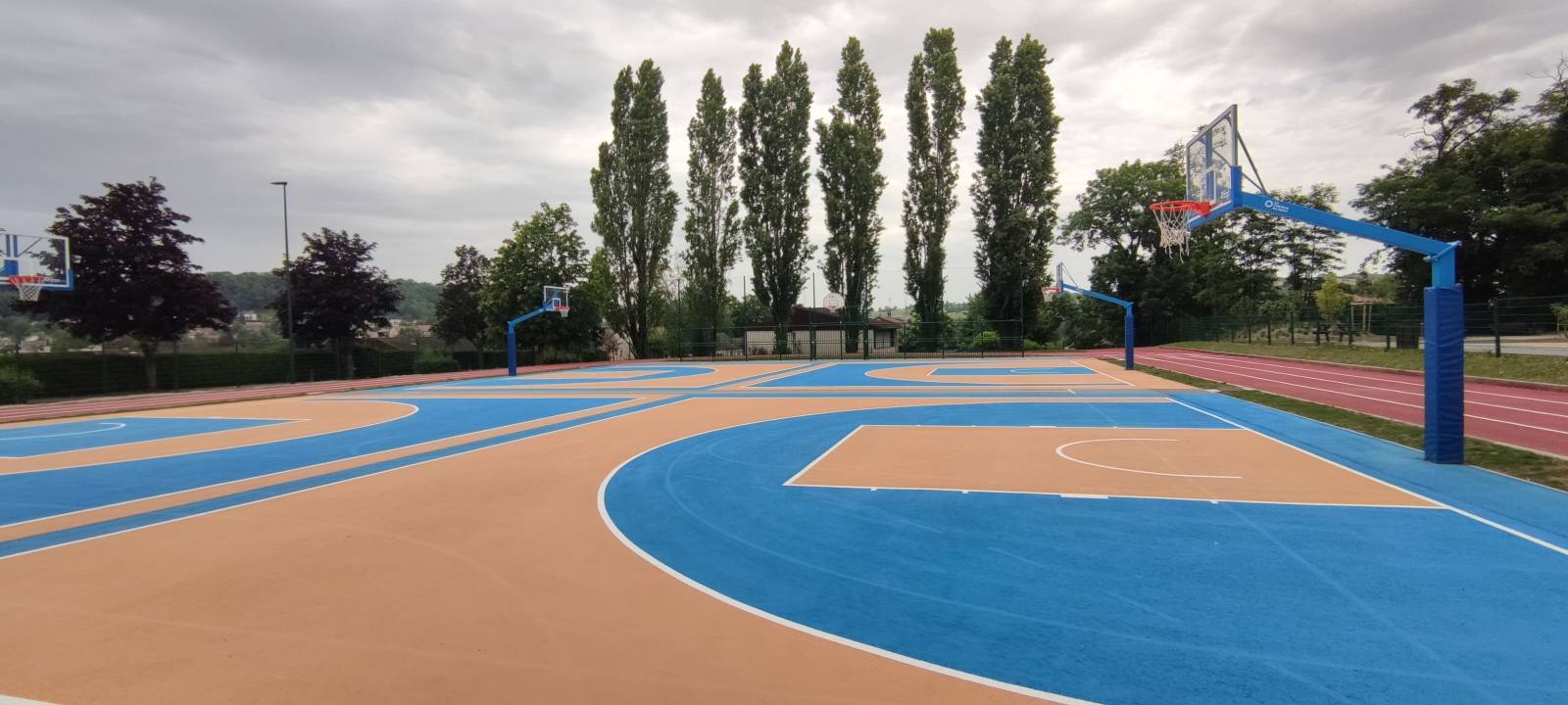 Nous sommes très heureux d’avoir grandement contribué à l’installation de 5 nouveaux terrains de basket 3x3 à proximité de Lyon. La Fabrique s’est chargée donc de la fabrication des 5 buts de basket, de la peinture et du tracé des terrains de basket mais également de la piste d’athlétisme !